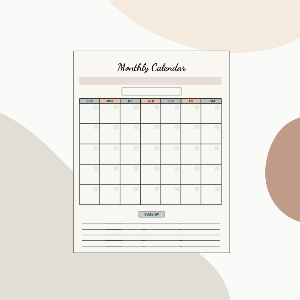 Monthly Calendar – Overview Your Month